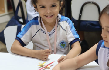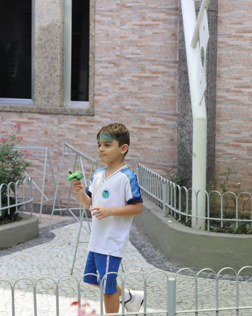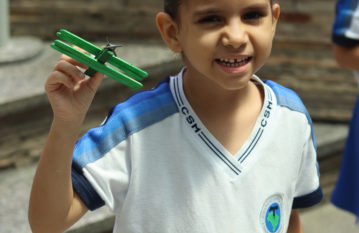 Hoje a nossa aula decolou! Exploramos a trajetória de Santos Dumont e usamos a imaginação para entender como os aviões funcionam.
