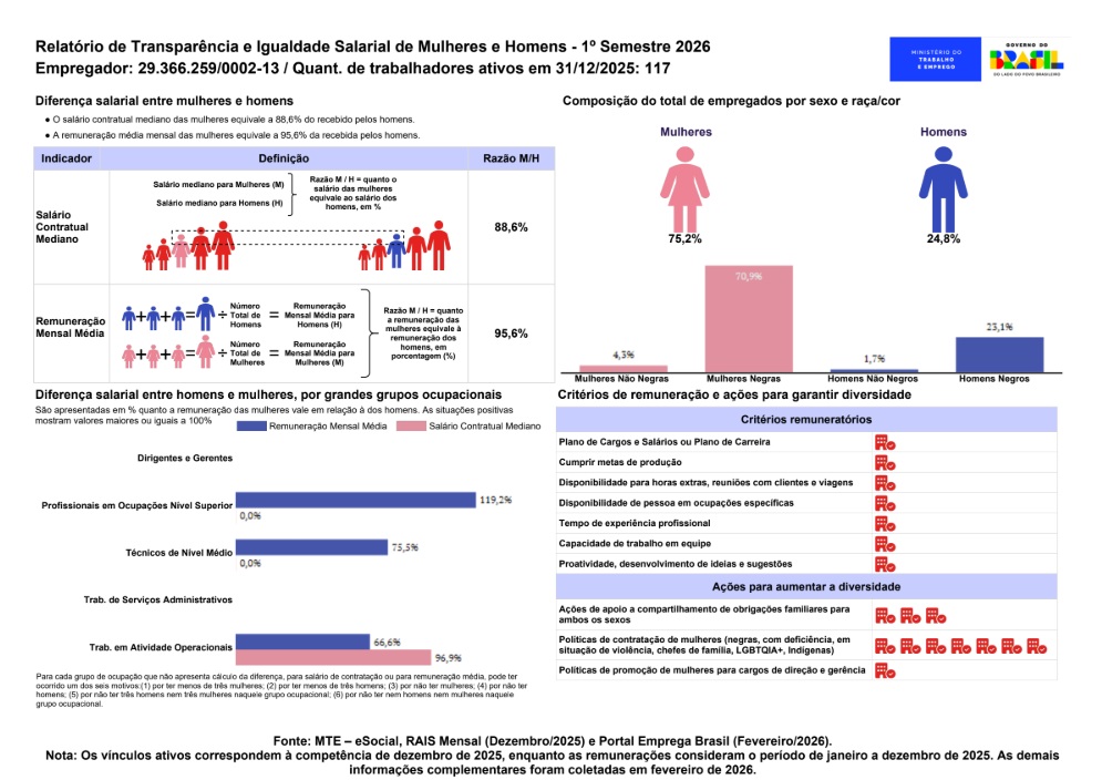 Acreditamos que a valorização dos colaboradores é essencial para a construção de um ambiente de trabalho saudável, ético e comprometido com o bem comum. Nesse sentido, o monitoramento e a divulgação das práticas relacionadas à equidade salarial demonstram nosso empenho em garantir condições justas, reconhecendo o mérito e a dignidade de cada profissional.